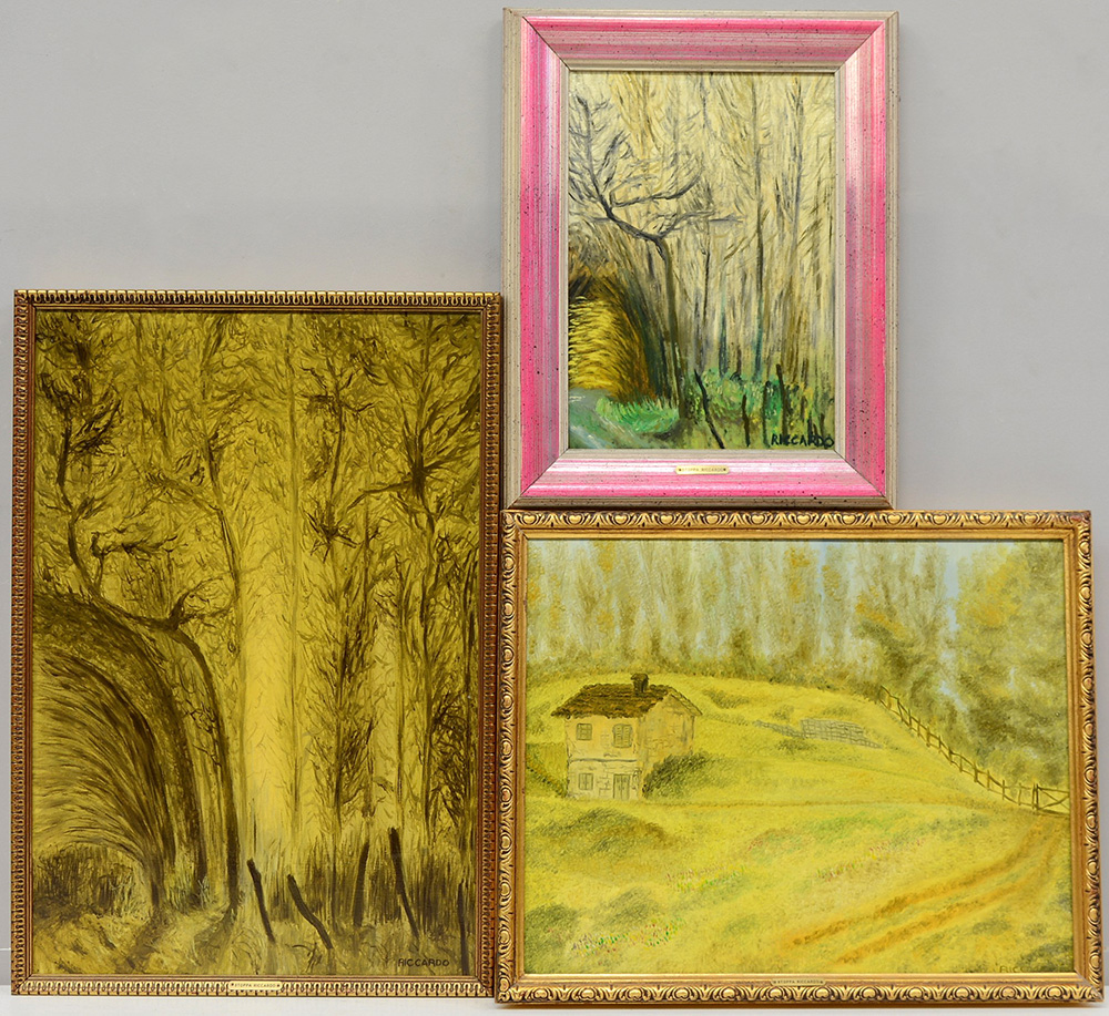 Riccardo Stoppa Lotto di tre dipinti ad olio raffiguranti paesaggi boschivi,...