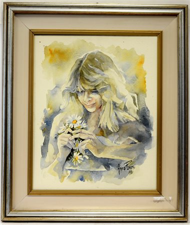 Anna Pavesi Milano (1931- Milano 1995) "Ragazza con margherite", acquerello...