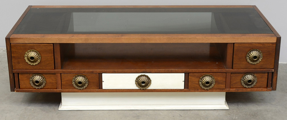 Mobile porta televisore con cassettini e piano in vetro (cm 122x37x50) (difetti)