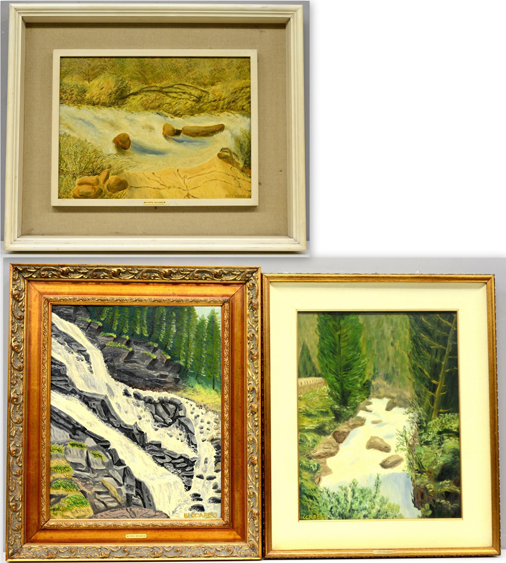 Riccardo Stoppa Lotto di tre dipinti ad olio raffiguranti torrenti, misure...