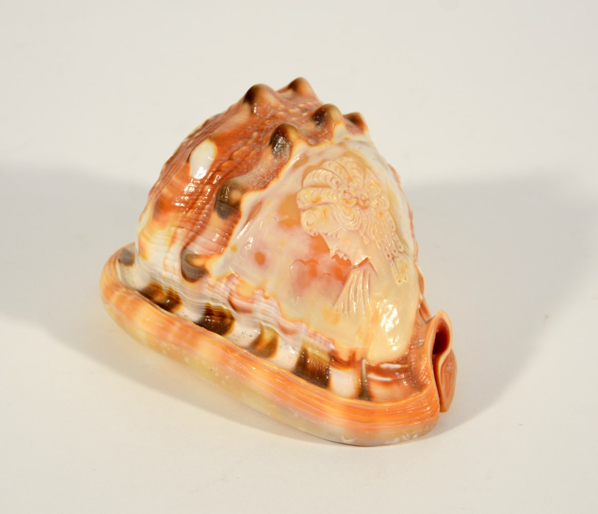 Lotto 3073 | Conchiglia intagliata a cammeo con volto femminile (cm 14)