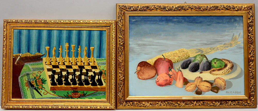 Riccardo Stoppa Lotto due dipinti ad olio su tela raffiguranti nature morte, misure differenti, in cornici (lievi difetti)