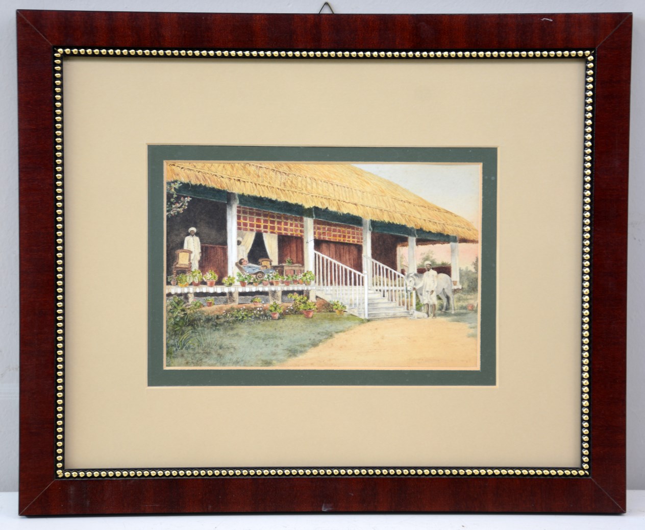 Ignoto "Scorcio di casa coloniale" acquarello (cm 15x22). In cornice