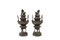 Manifattura giapponese, coppia di incensieri biansati in metallo brunito...