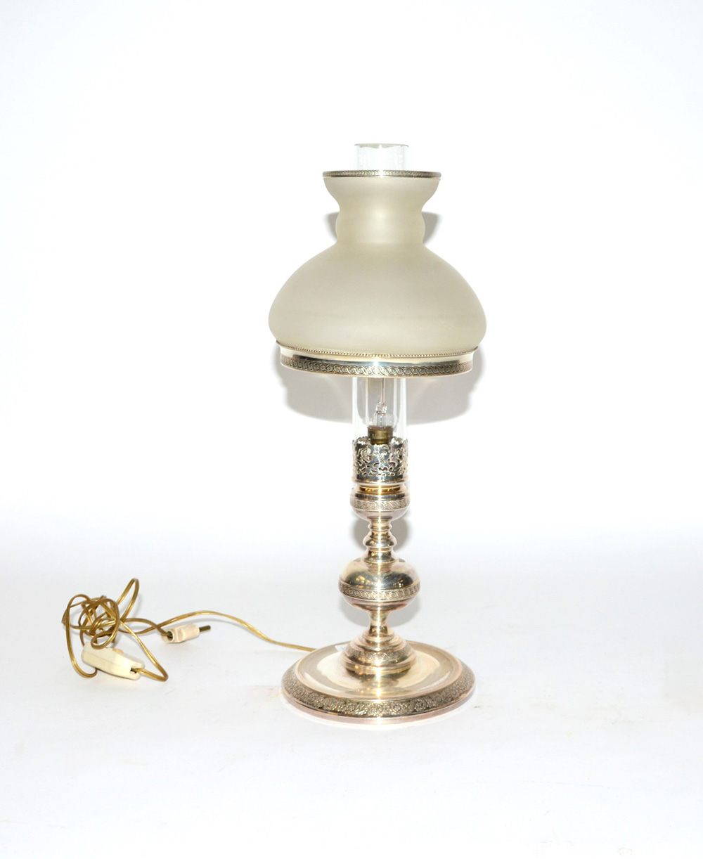 Lotto 3162 | Lampada ad olio adattata per luce elettrica con fusto in argento (lievi difetti)
