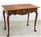 Antico tavolo scrittoio lastronato in noce con fascia sagomata e cassetto,...