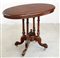 Tavolino ovale in mogano su base quadripode con montanti intagliati e torniti, munito di rotelline, sec. XIX (cm 78x91x53) (difetti e restauri)