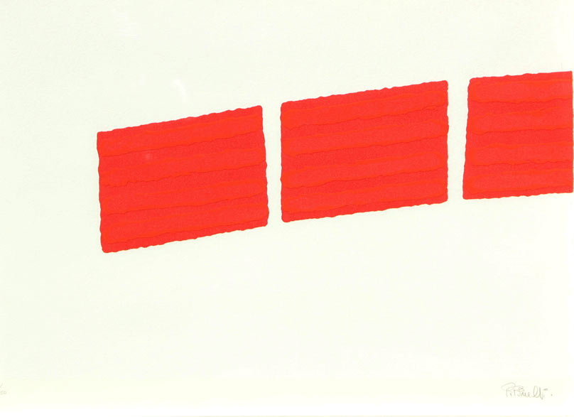 Pino PINELLI Catania 1938 Senza titolo litografia a colori colour lithography cm 54×74 La misura è riferita al foglio. The size is refered to the paper Edizione di 150 esemplari Edition of 150 Firma ‘P. Pinelli’ (in basso a destra) Signed ‘P. Pinelli’ (lower right)