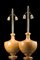 Coppia di lampade a due luci con base in legno laccato decorato a finto...