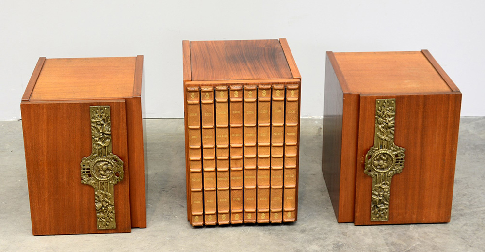 Lotto 3297 | Lotto di†tre mobiletti porta dischi in legno (difetti)