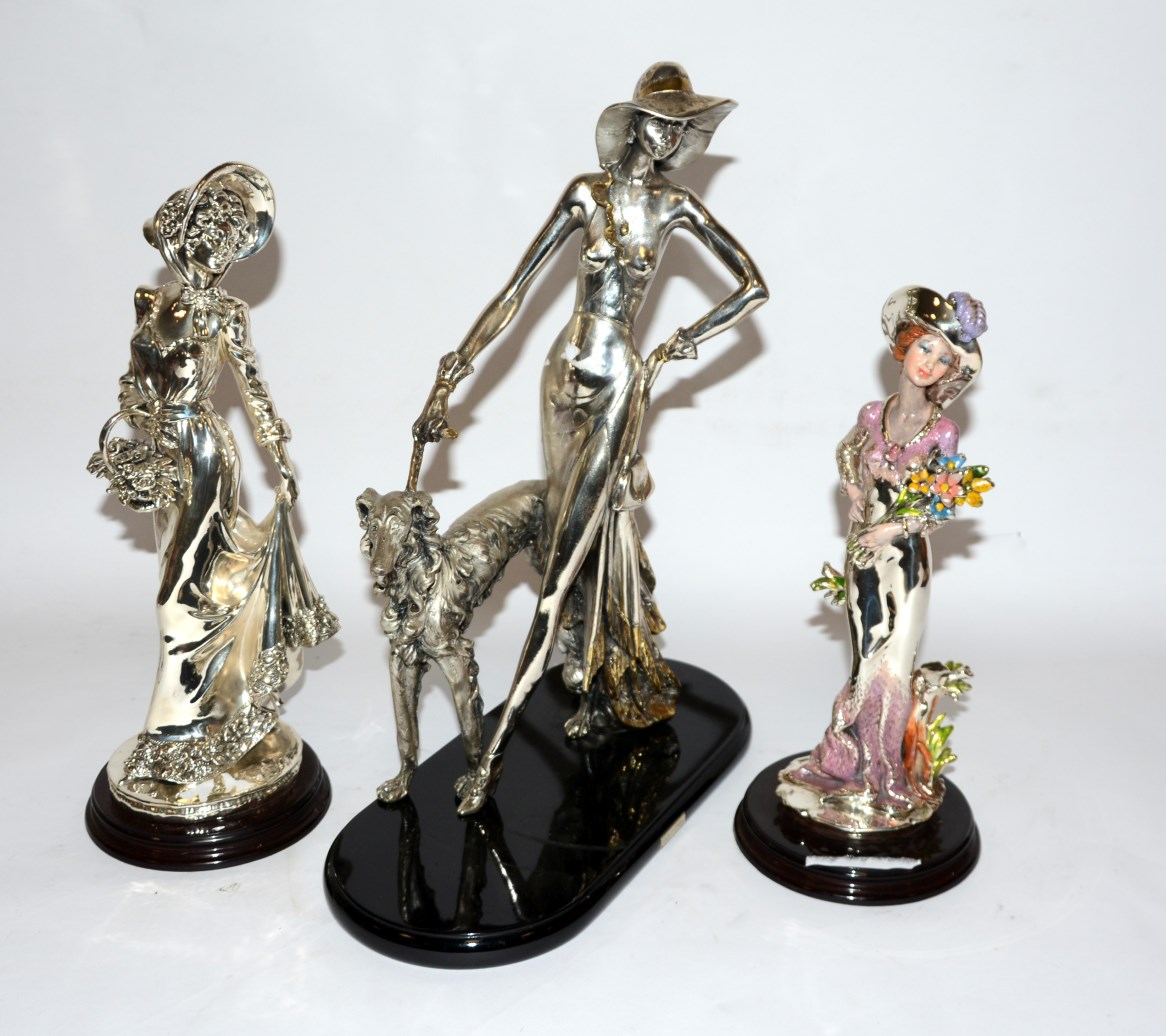 Lotto 3303 | Lotto di tre sculture raffiguranti figure femminili (h max cm 45) (lievi...