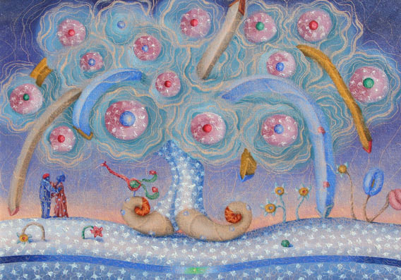 Dante CUCURNIA Carrara 1957 Sotto l’albero dell’Ibis tecnica mista su cartoncino intelato mixed media on cardboard laid down on canvas cm 25×35 Titolo, firma ‘Sotto l’albero dell’Ibis, Dante Cucurnia’ (al retro) Titled, signed ‘Sotto l’albero dell’Ibis, Dante Cucurnia’ (on the reverse)