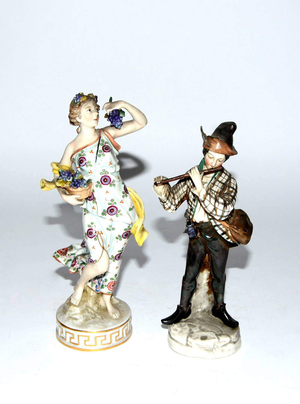Lotto composto da due figure in porcellana raffiguranti baccante e suonatori...