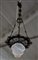 Manifattura sec. XX. Rizzarda (?) Lampadario in ferro battuto con coppa in vetro opalescente (difetti)