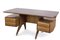 SCRIVANIA - Scrivania in noce con piano in vetro retro verniciato. Piedini...