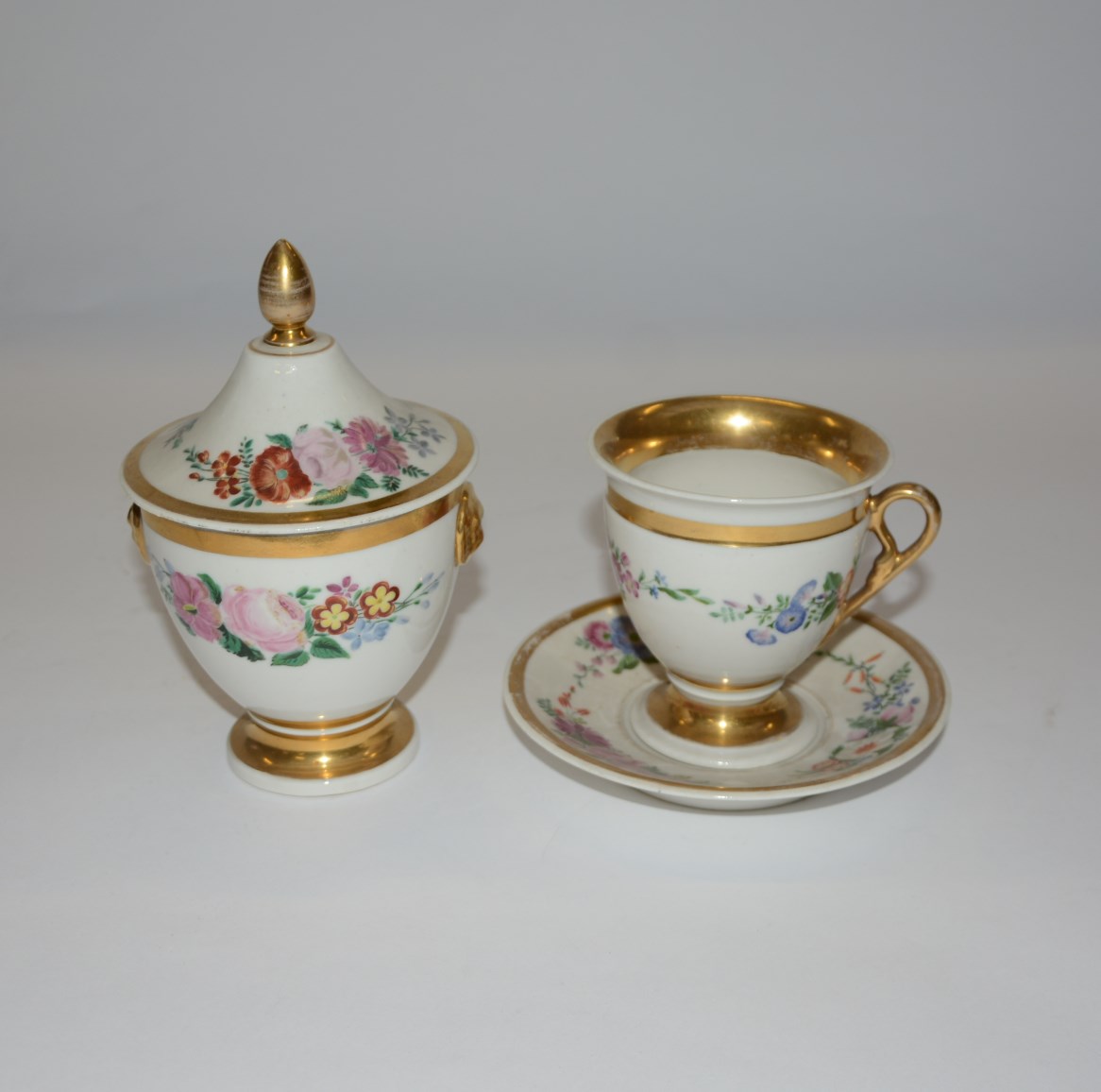 Lotto composto da una tazza con piattino del sec. XIX, una zuccheriera con...