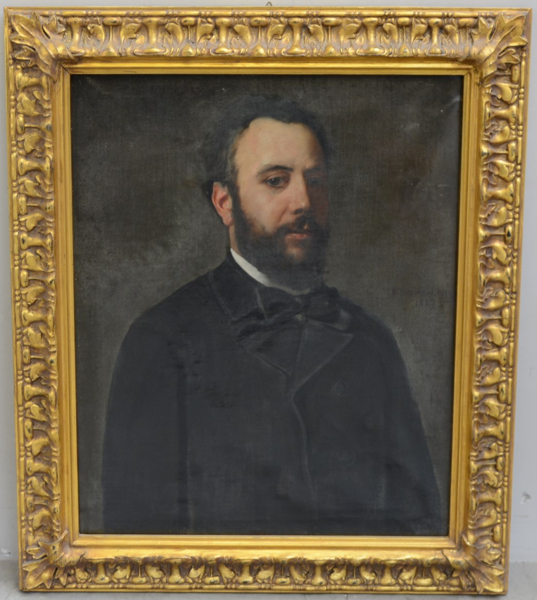 * Scuola della seconda met‡ del sec. XIX "Ritratto di uomo con barba" olio su tela (cm 80x65) firmato e datato 1887 a destra (lievi difetti)