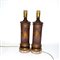 * Coppia di abat jour con corpo in vetro decorate a putti con festoni e strumenti musicali. Ghiera in metallo dorato, base in marmo (h cm 50)