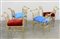 Gruppo di quattro panchetti in ottone con braccioli mossi e fregi sagomati,...