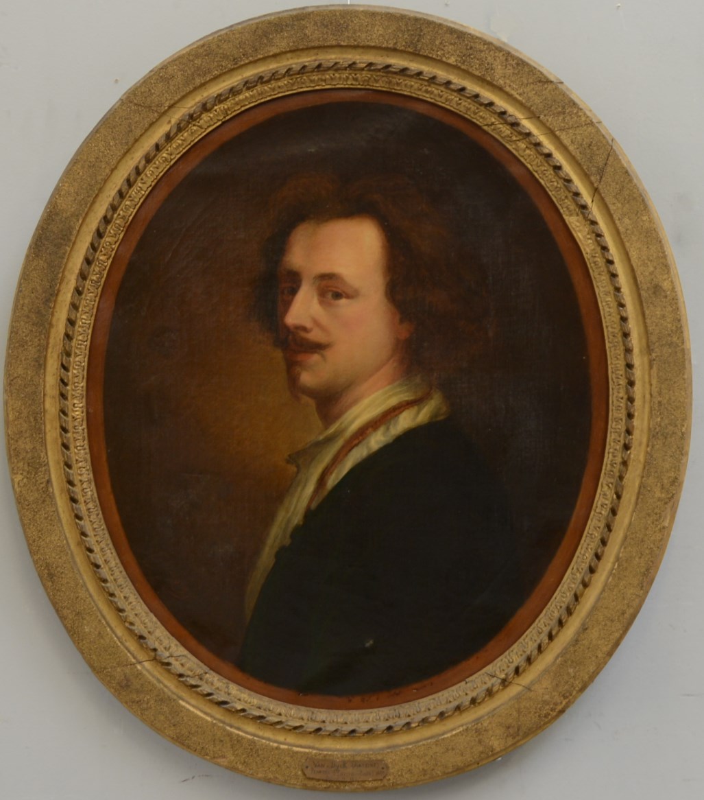 * Da Van Dyck "Autoritratto del maestro" olio su tela ovale (cm 68x60) in cornice dorata