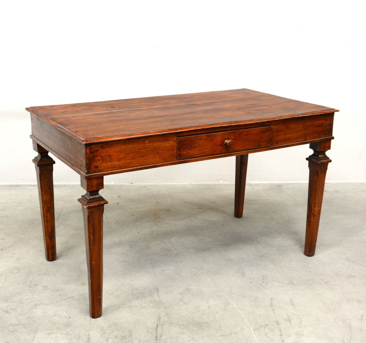 * Tavolo di forma rettangolare con fascia ad un cassetto, gambe sagomate (cm 134x80x75)