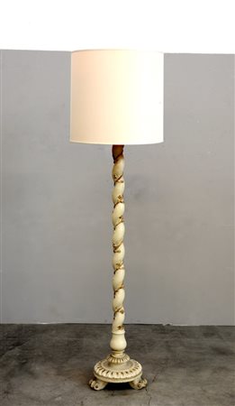 Lampada a stelo in legno laccato e dorato con fusto a torciglione poggiante...
