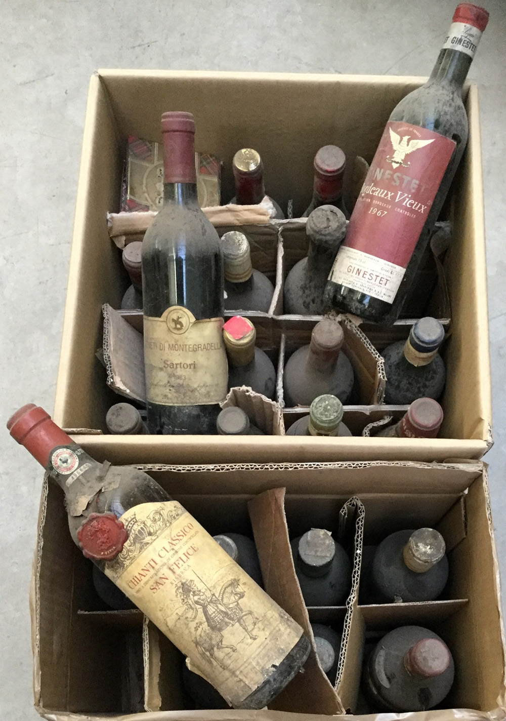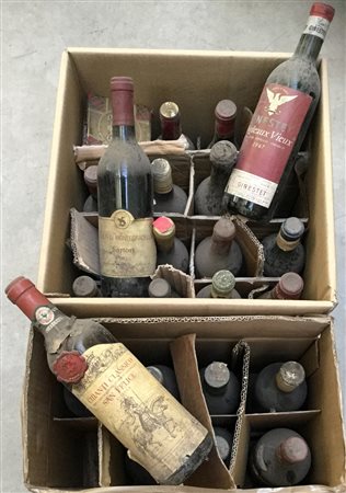 Lotto composto da numerose bottiglie di vino di annate e vitigni differenti, due cartoni (difetti)
