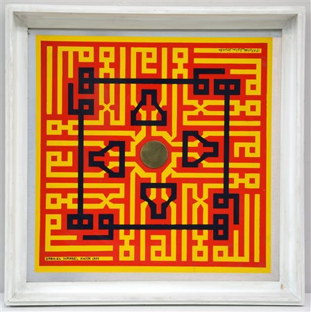 Gabriel Mandel Khan "Senza Titolo" composizione su lastra (cm 48x48). F.ta e datata 1976 in basso a sinistra in cornice