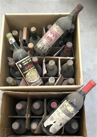 Lotto composto da numerose bottiglie di vino di annate e vitigni differenti, due cartoni (difetti)
