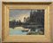 Scuola del sec. XIX, "Paesaggio fluviale con barca e pescatori", olio su tela (cm 60x85). Siglato e datato 1889 in basso a sinistra. In cornice