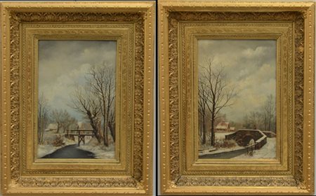 Charles Duval * Coppia di olii su tela raffiguranti paesaggi invernali con...