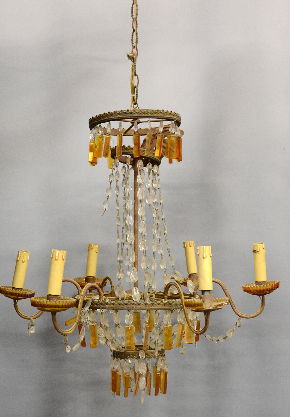 Lampadario a cesto a sei fiamme in stile impero (h cm 56) (difetti e mancanze)