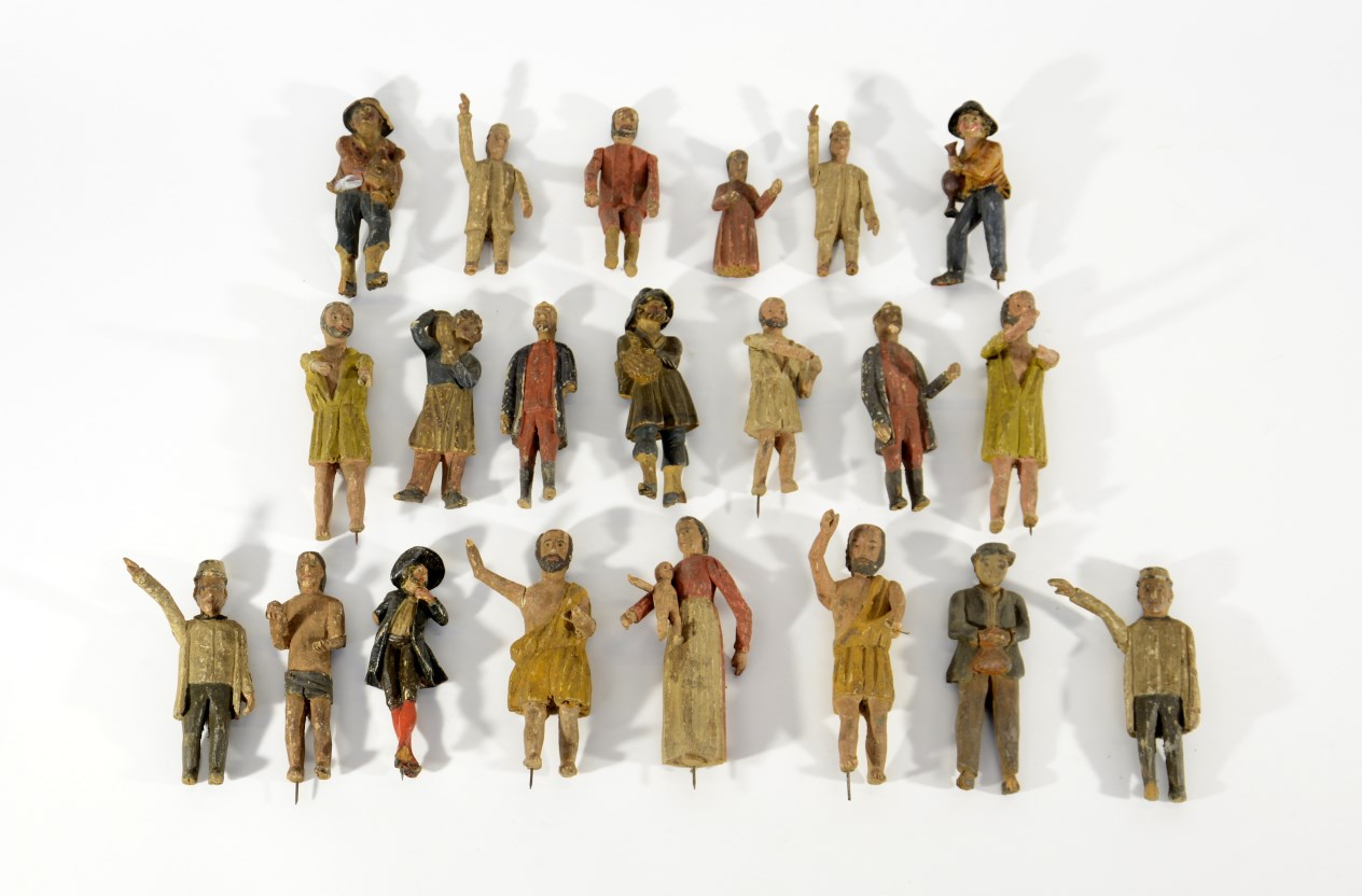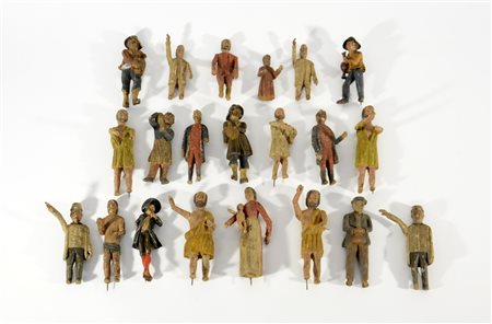 Arte del sec. XIX, lotto composto da ventitrÈ statuine in legno policromo (difetti e mancanze)