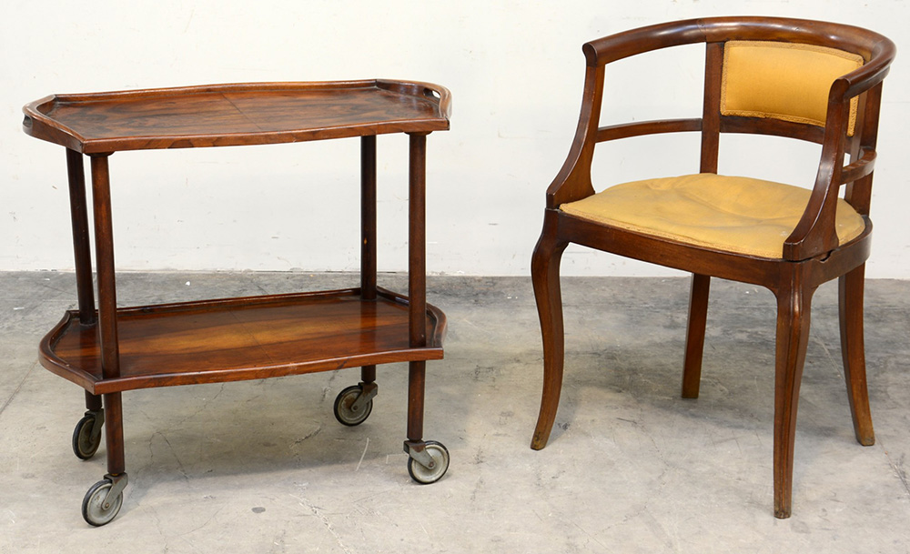 Lotto 3584 | Lotto composto da un carrellino a due ripiani e una piccola teca da tavolo...