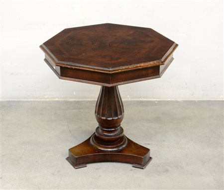 Tavolino con piano ottagonale, gamba tornita e scanalata (cm 59x60x59)