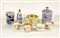 Lotto composto da cinque tazzine, un piattino, un albarello e due contenitori con coperchi in ceramica policroma (difetti)