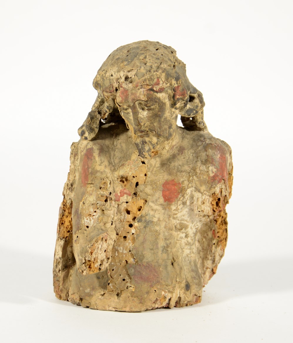 Antica scultura lignea raffigurante Cristo (h cm 20) (difetti)