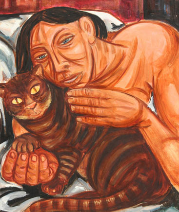 Giuseppe MIGNECO Messina 1908 - Milano 1997 Donna e gatto, 1958 olio su tela...