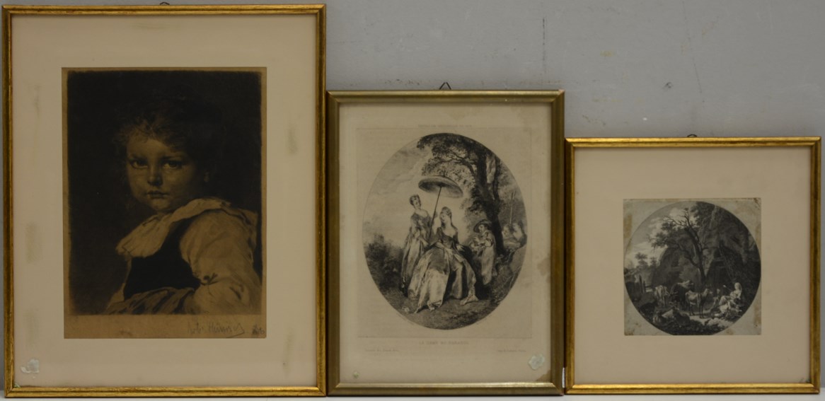 Lotto di tre piccole xilografie di soggetti diversi, in cornice (max cm 22x16,5)