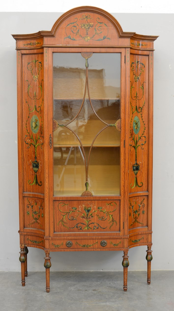 Vetrina in satin wood dipinta, il fronte rosso e il decori a candelate (104x202x38), Inghilterra. XX sec., (difetti e rotture)