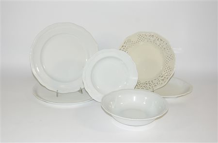 Lotto composto da cinque pezzi in ceramica bianca, composto da 4 vassoi, un...