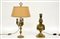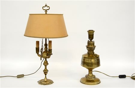 Una lucerna in ottone e una lampada ad olio in ottone marca Le Vallois-Perret (misure diverse)