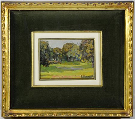 De Francisco "Paesaggio" olio su compensato (cm 9,5x13) firmato in basso a destra. In cornice