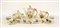 Parte di servizio da caffË in porcellana a lustrondi gusto Liberty con figure e bordo in oro composto da lattiera, caffettiera, zuccheriera, 12 piattini, 9 tazzine (rotture)