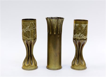 Arte di trincea. Lotto composto da tre vasi ricavati da bossoli (difetti)