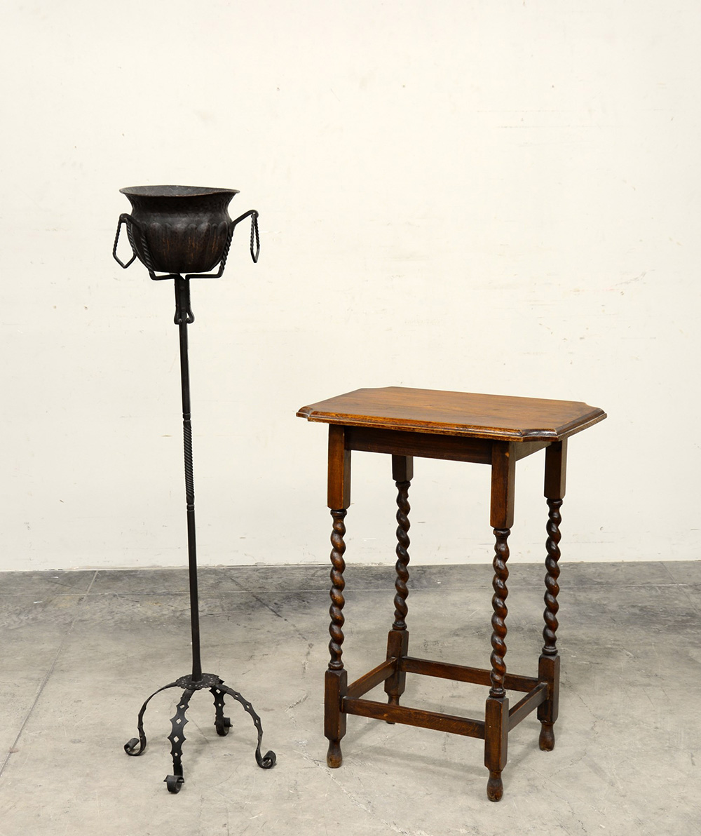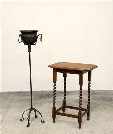 Lotto composto da un tavolino e un portavaso in ferro battuto (difetti)
