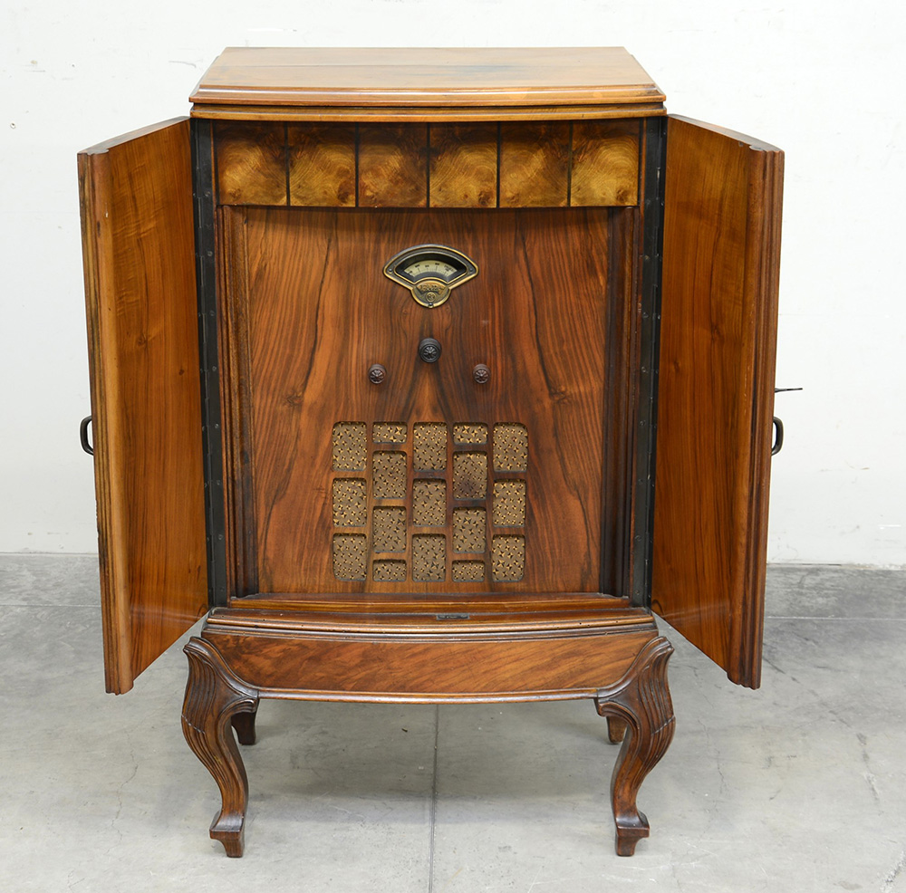 Mobile radio Fada con due sportelli sul fronte e gambe sagomate (cm 60x100x42) (difetti e mancanze)