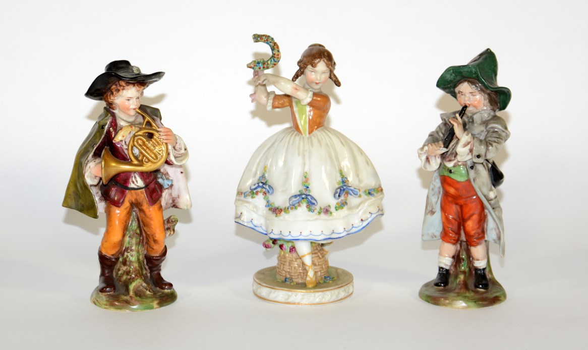 Manifatture diverse. Lotto composto da tre statuette in ceramica e porcellana...