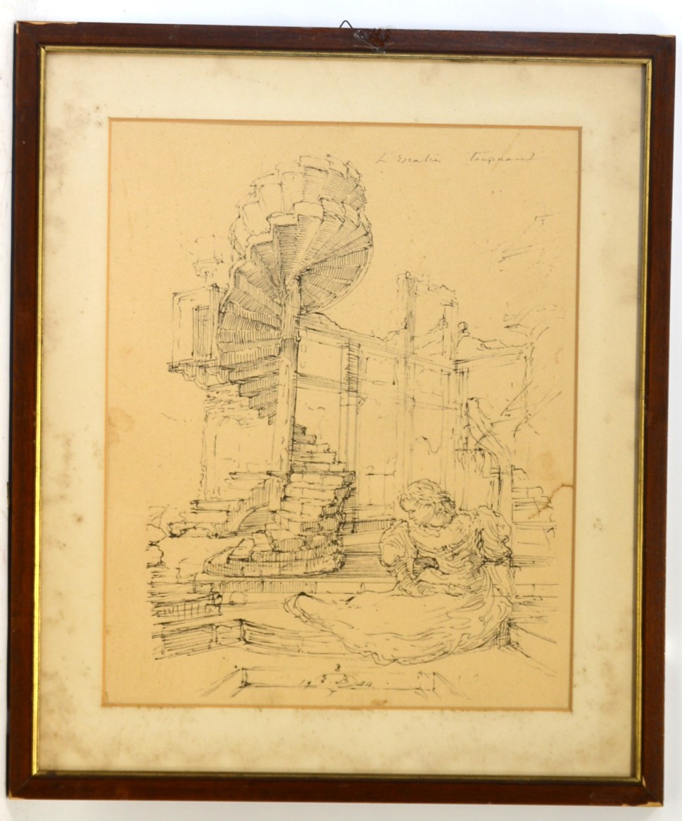 Lotto 3801 | Stampa intitolata "L'Escalier Tornant" siglata e datata E. B. 1944 (cm 40x32)...