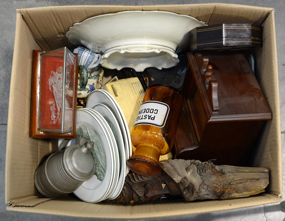 Lotto 3880 | Cartone contenente numerosi oggetti diversi (difetti)